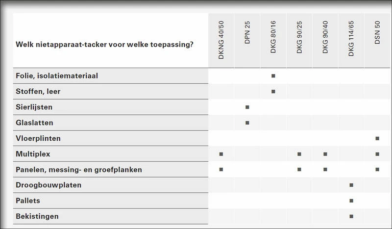 - Voor de bevestiging van folies, stoffen, leer en isolatiemateriaal