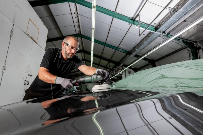 - Polijstmachine met hoog koppel voor het fijnslijpen en hoogglanspolijsten van gelakte oppervlakken